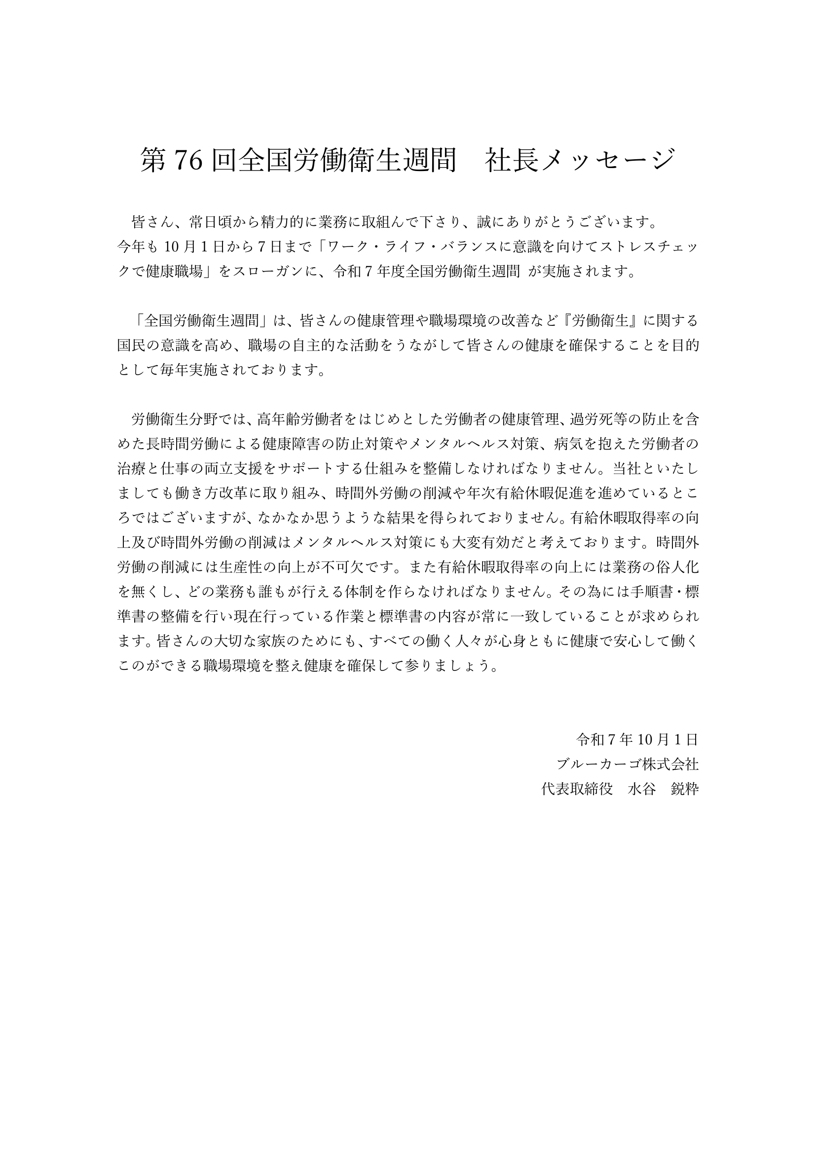 令和7年 第76回全国労働衛生週間を迎えるにあたって